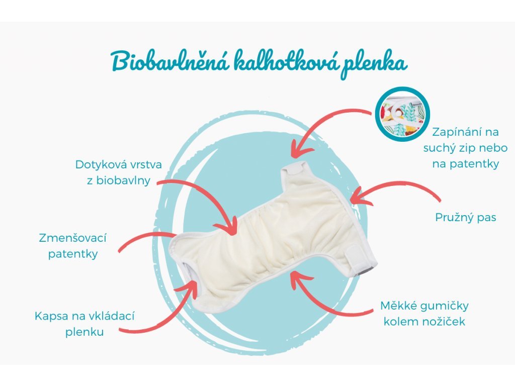 - Má kapsu, do které vložíte jakoukoliv vkládací plenku. Tady si kupujete plenku s prázdnou kapsou, do které můžete použít klidně obyčejnou čtvercovou plenku nebo vkládací plenku.