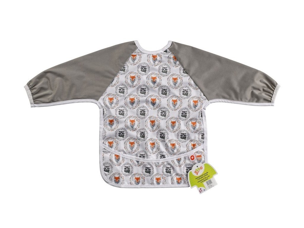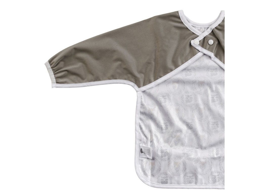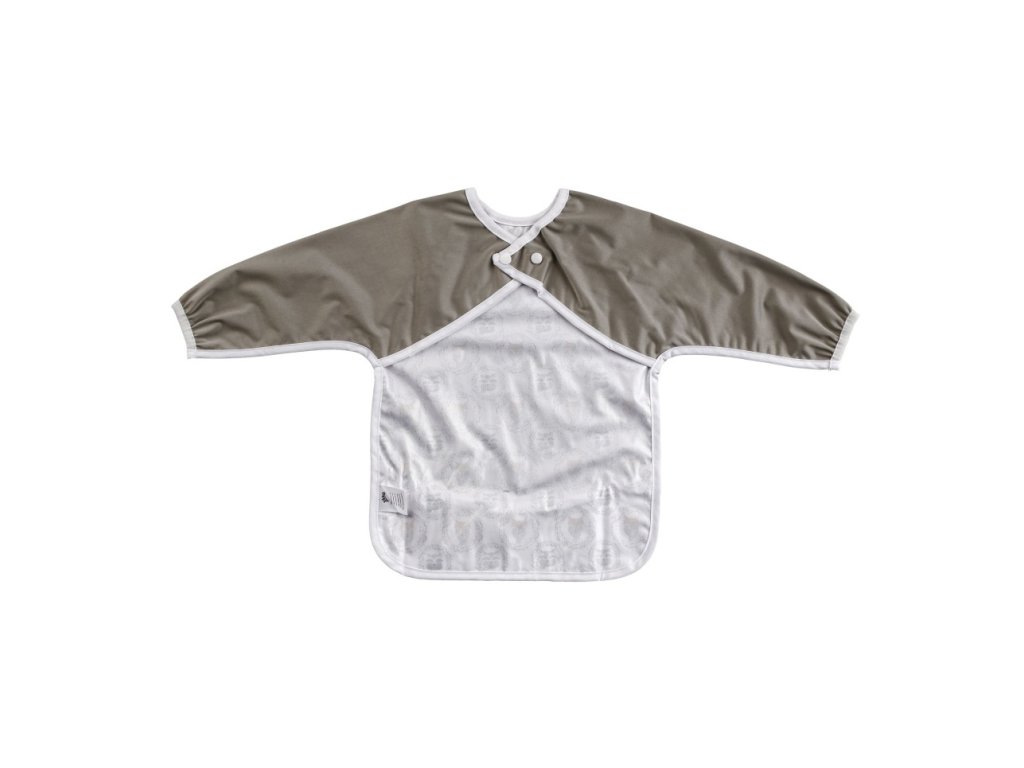 Praktický bryndáček XKKO s rukávy a kapsou, kterých chrání outfit vašeho dítěte při krmení nebo při prvních uměleckých pokusech s barvami.