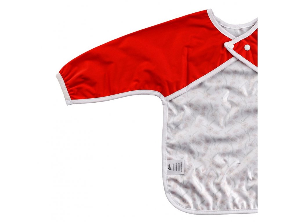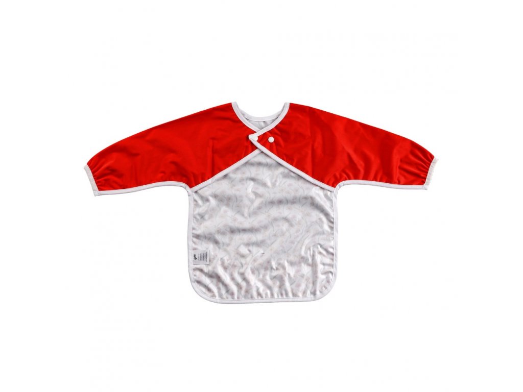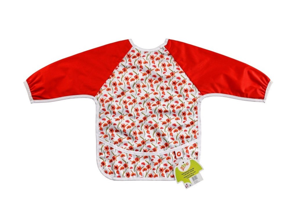 Praktický bryndáček XKKO s rukávy a kapsou, kterých chrání outfit vašeho dítěte při krmení nebo při prvních uměleckých pokusech s barvami.