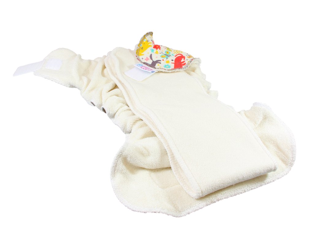 Plenka se skládá ze dvou částí - samotného pleny a dlouhé vkládací pleny, která se používá pro zvýšení savosti. Ta se připne patentkem do plenky. Ze začátku lze plenu používat jen samotnou, vkládačku začněte přidávat, až když plena nestačí svou savostí.