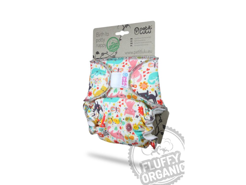 Petit Lulu kalhotková plena Fluffy Organic - kočičí louka, suchý zip